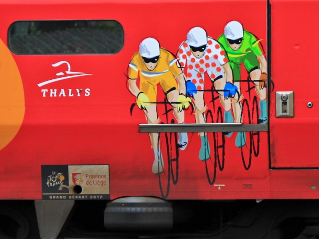 Heute am 29.06.2013 ist Start der 100sten Tour de France, mit diesem Logo wurde 2012 auf dem Thalys für die Province Lüttich geworben, in der die 99. Tour gestartet wurde.