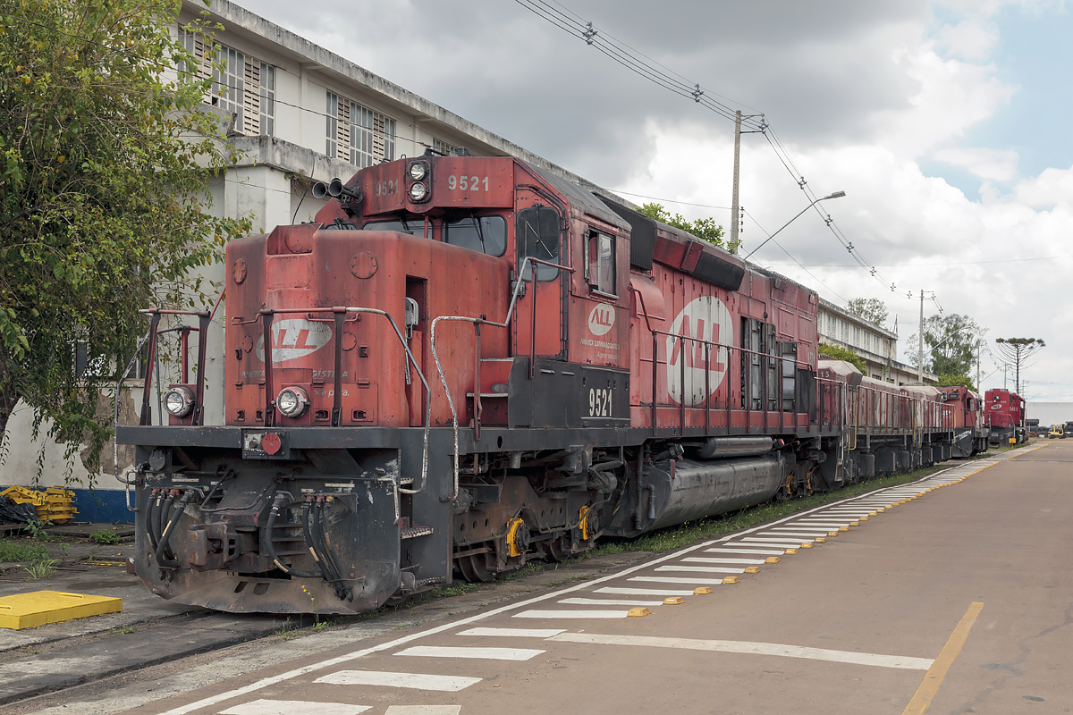 Die Diesellok BB40-2 4818 (EMD SD40-2 umbaute und umspurte für Meterspur) im VLI Betriebswerk Divinopolis am 29. Oktober 2018.