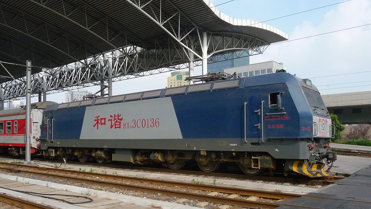 Eine Elektrolok HXD3C 0136 im Bahnhof Shanghai, 22.10.2015