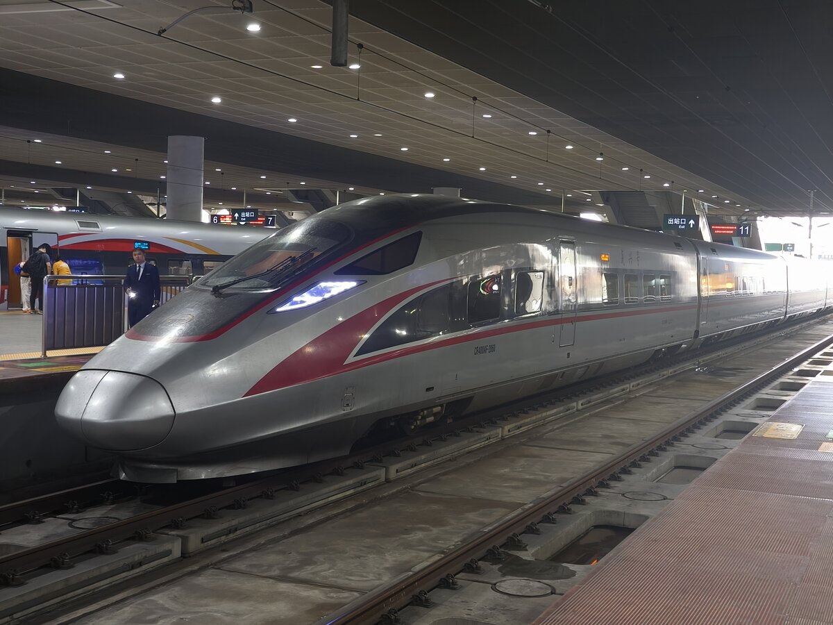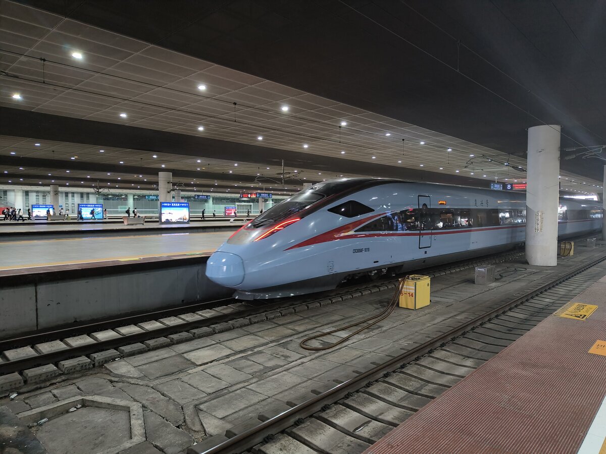 2024.10.13, SS8 0209, GuangZhou-ShenZhen Railway neben der SZMC L3 CaoPu Station. Da der CRH1A vorbeifuhr, verläuft diese SS8 nach Norden ins Landesinnere. Wenn man stark genug heranzoomt und mit dem Foto der SS8 0149 vergleicht, stellt man fest, dass der Schriftzug 广深共线 (Share Track on GuangZhou---ShenZhen Railway) fehlt. Es scheint, dass nur das GuangZhou-Depot diese Aufschriften aktiv anbringt, während andere Depots, wie z.B. das ChangSha-Depot, wo die 0209 herkommt, sich überhaupt nicht um die besagten Regeln kümmern. Oder vielleicht hat das GuangZhou-Depot die Regel selbst missverstanden...?