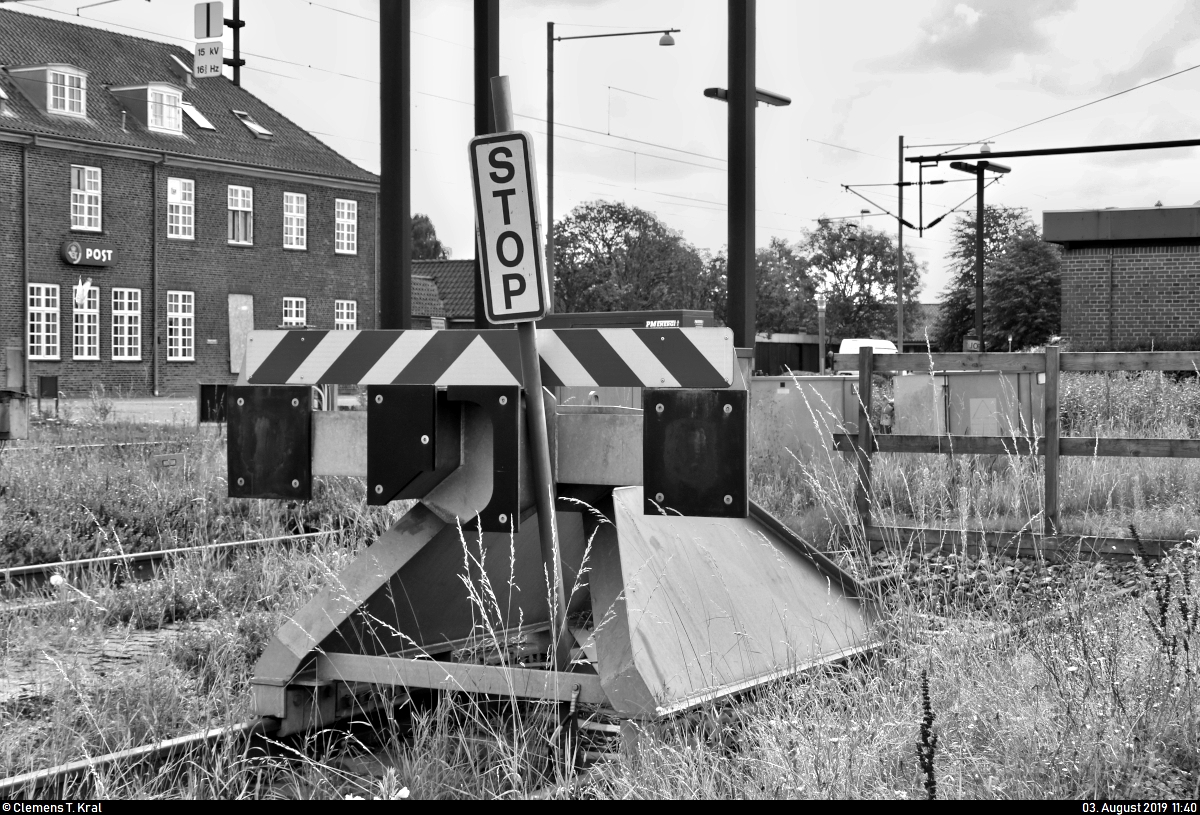 Signal am Bahnübergang am ehemaligen Trittbrett in Hammelev (Hammeleff). Hammelev ist heute der Wendepunkt für Draisinetouren von Haderslev. Aufnahme:15. Juli 2023.