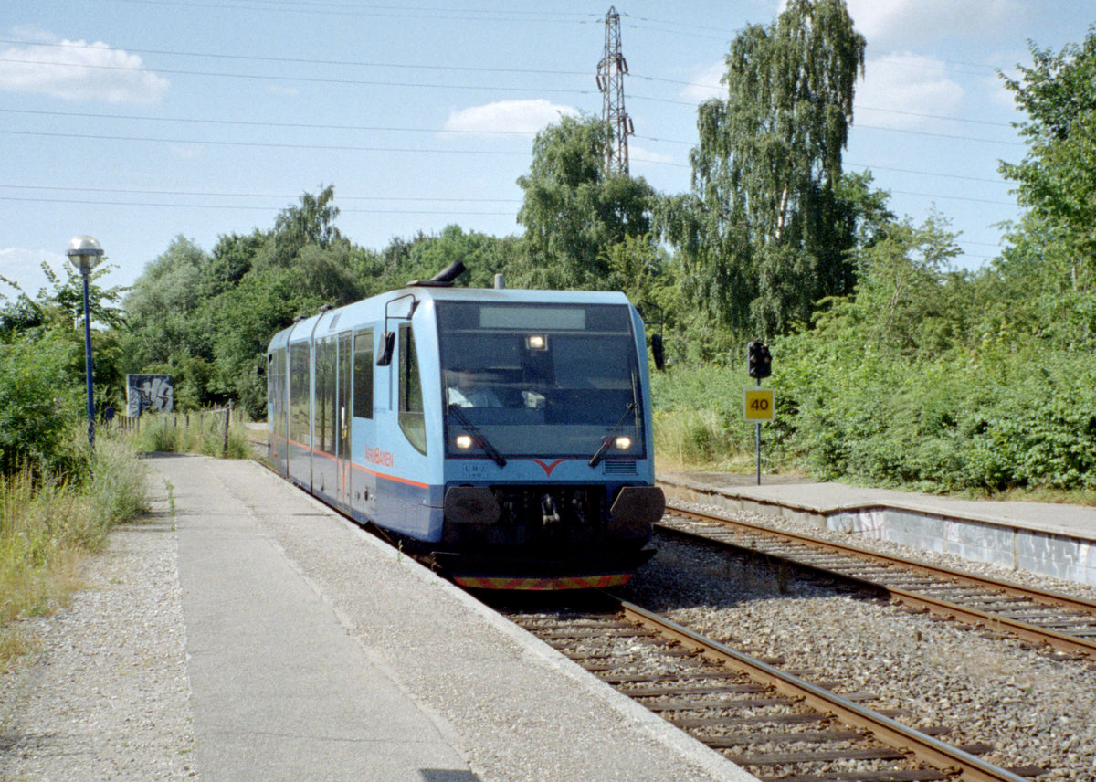 Lyngby-Nærum-Jernbane (Nærumbanen, LNJ): RegioSprinter Lm 23 hält im Bahnhof Nærum. Datum: 12. Juli 2006. - Scan eines Farbnegativs. Film: Agfa XRG 200-N. Kamera: Leica C2.
