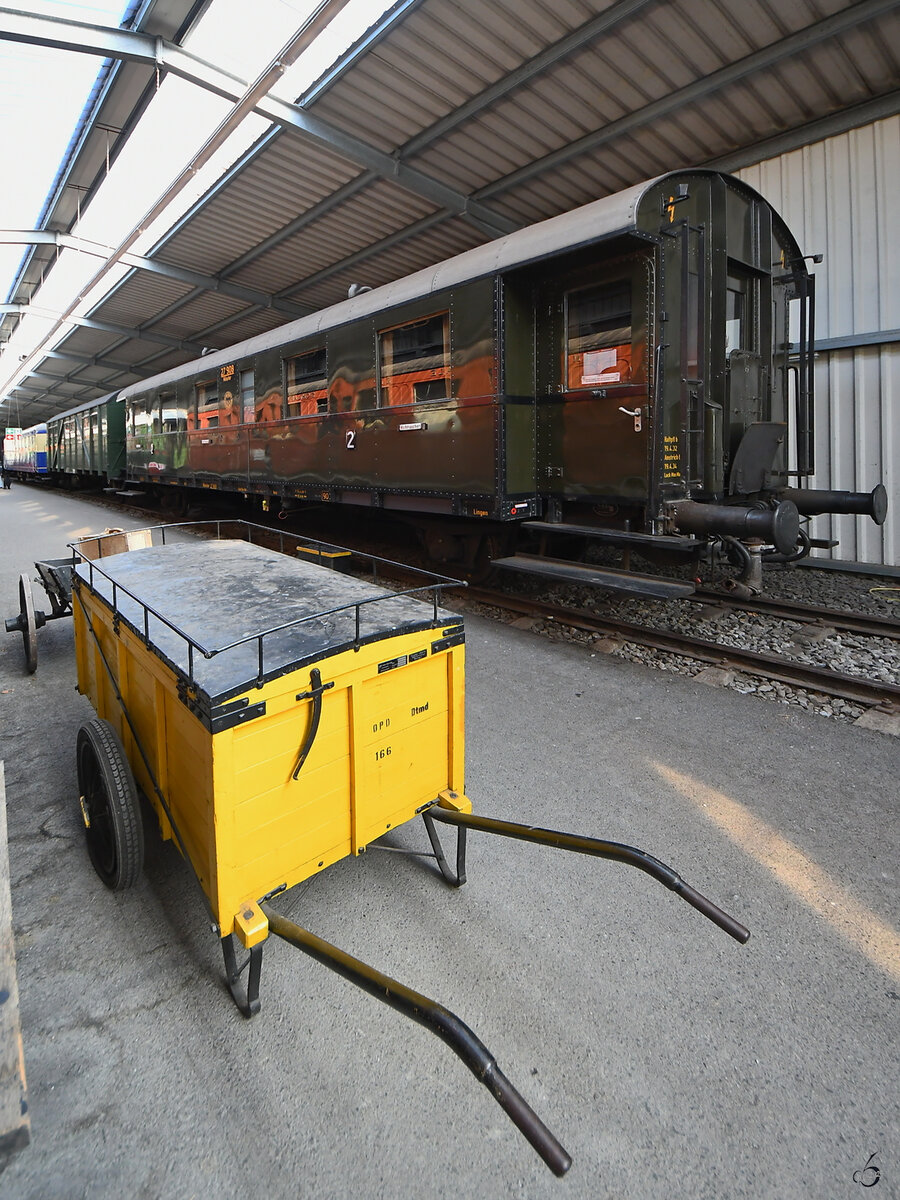 27 908  Münster  ist ein Einheits-Durchgangswagen der Bauart Bi-29 aus dem Jahr 1930. (Eisenbahnmuseum Bochum, April 2025)