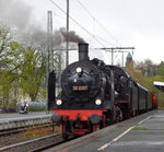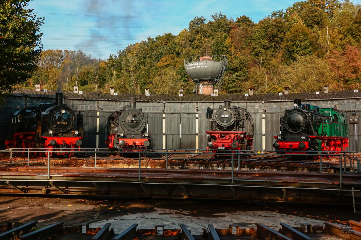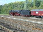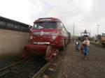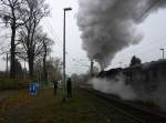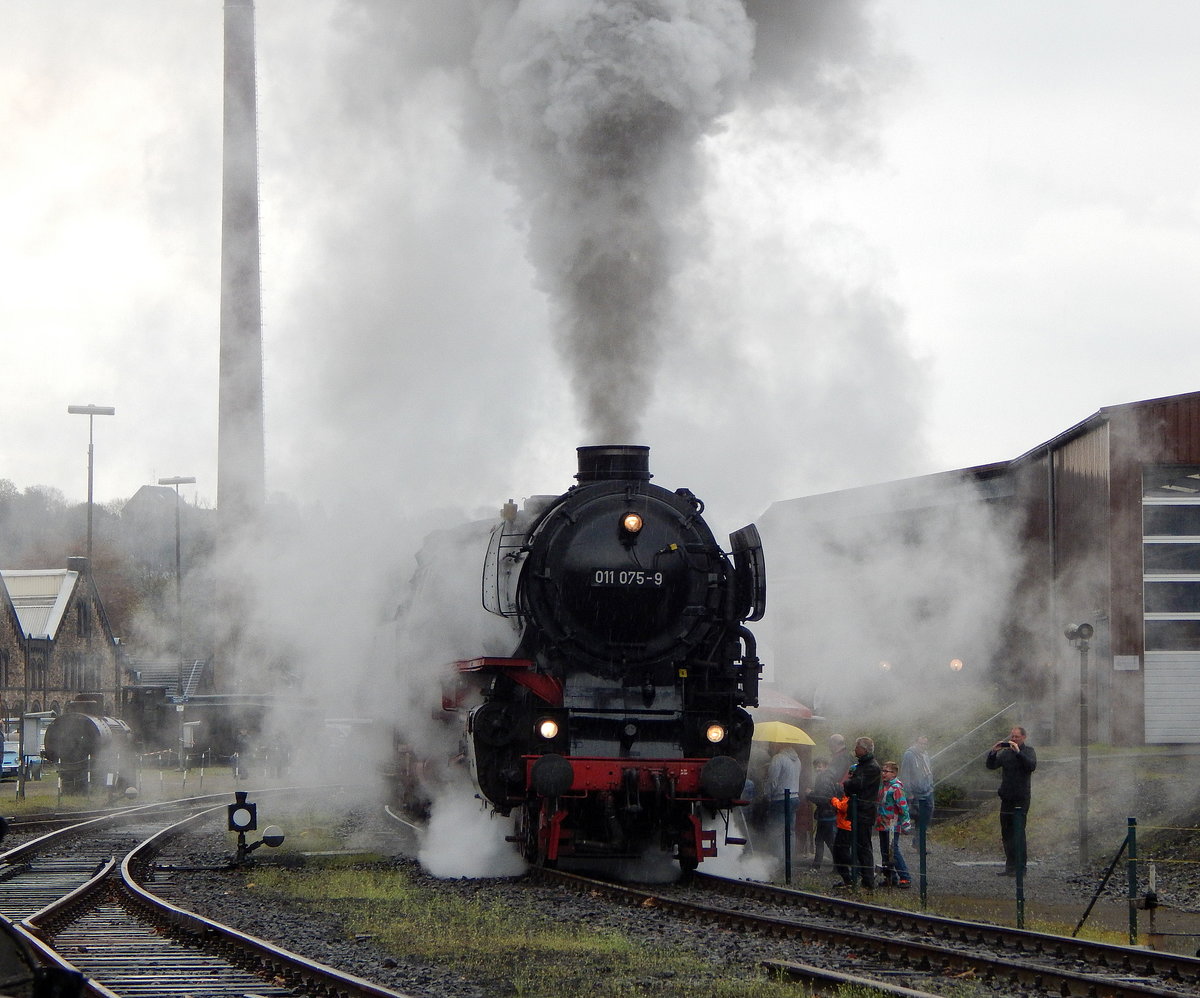 011 075-9 stand bei strömenden Regen in Bochum Dahlhausen und absolvierte Führerstandsmitfahrten.