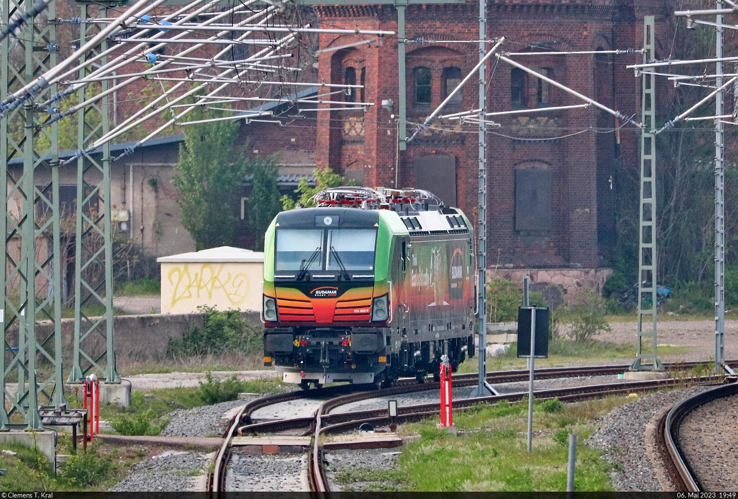 Die zum Aufnahmezeitpunkt erst seit wenigen Tagen im Dienst stehende 193 580-8 (Siemens Vectron) verweilte neben dem Bahnbetriebswerk Halle (Saale).