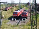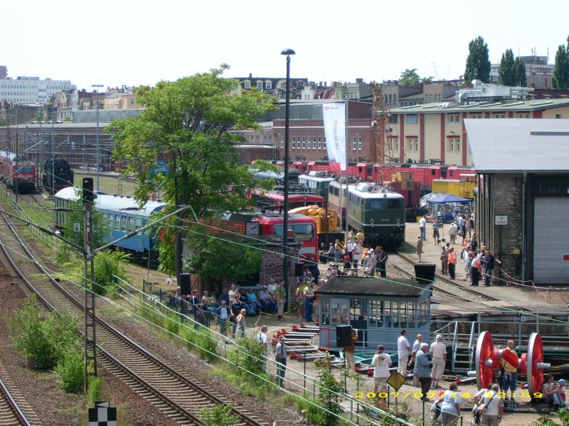 Blick auf das Festgelände des Bw Halle/Saale (Regio). Am 14.07.07 fand das Sommerfest statt, zu dem auch zahlreiche Loks aus dem DB-Museum Koblenz-Lützel zu Gast waren.