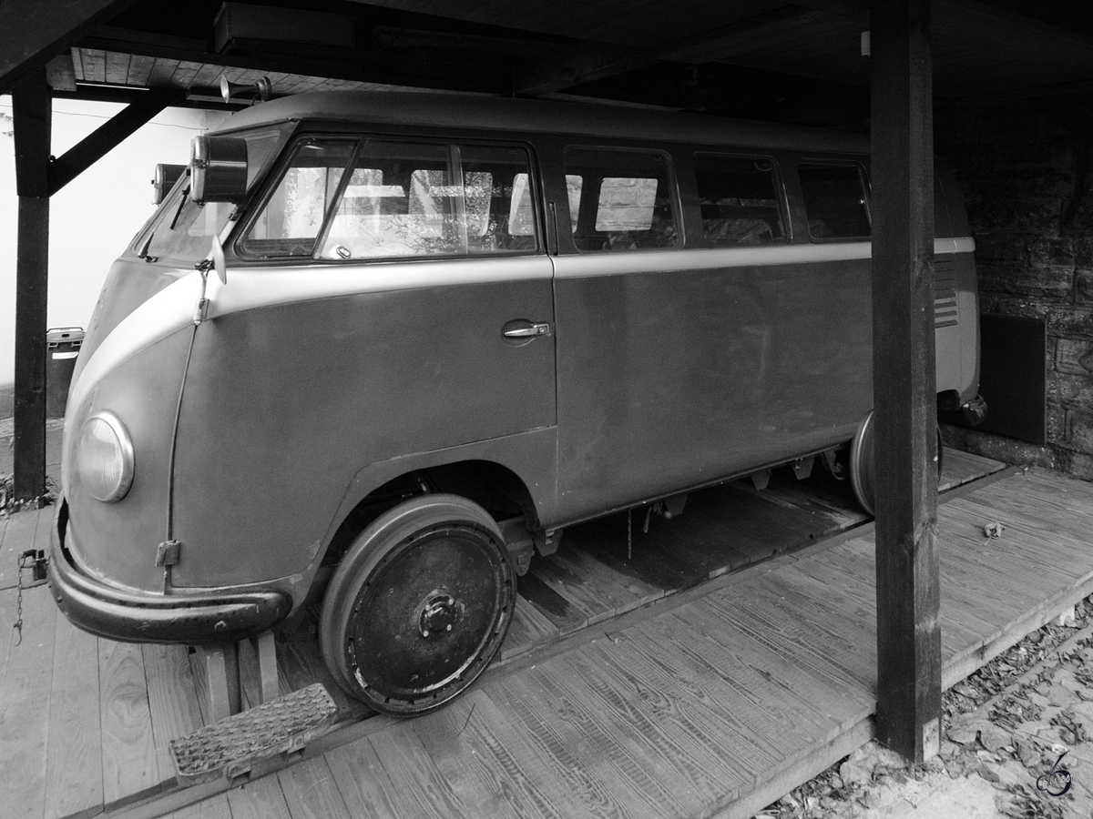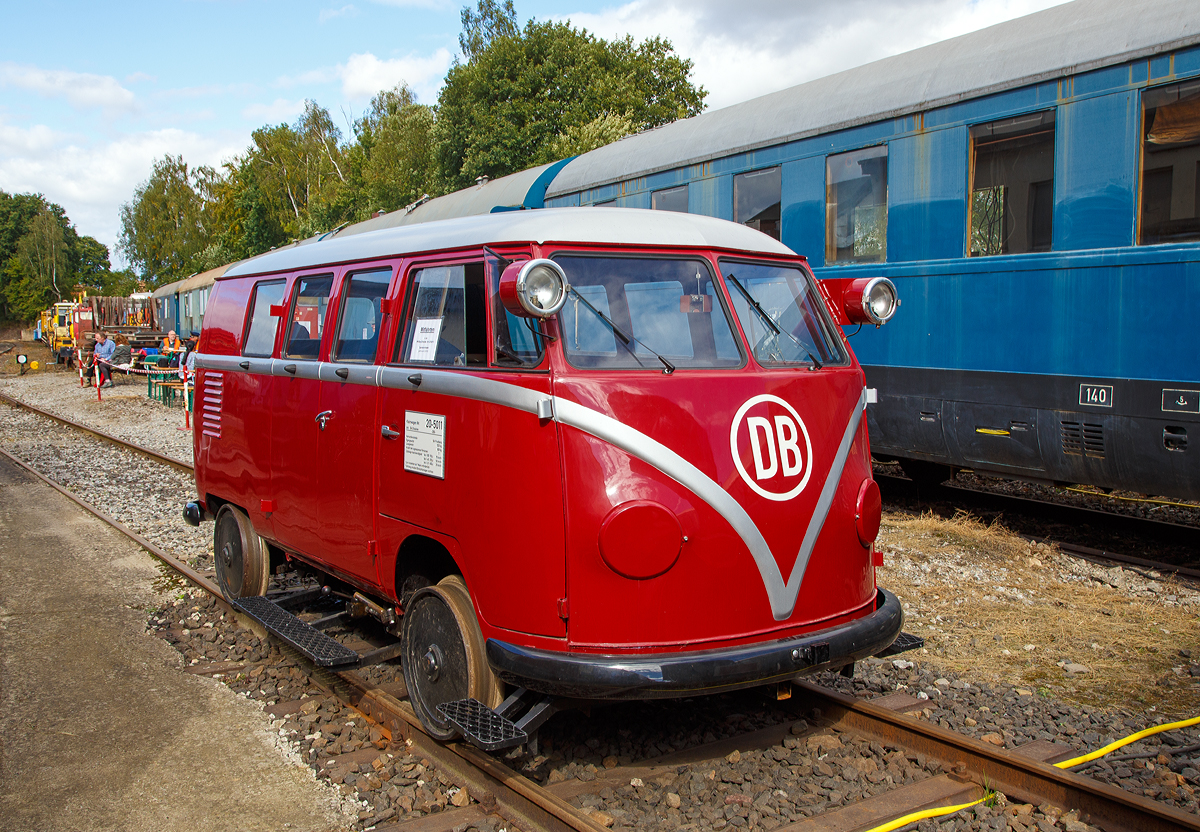 Die BA-Draisine (Bahnamtsdraisinen) mit einer VW-Transporter T1a -Karosserie Klv 20-5011, Art BA-Draisine 200 der BLE Butzbach-Licher Eisenbahnfreunde e. V. am 02.10.2016 beim Tag der offenen Tür der BLE Butzbach-Licher Eisenbahnfreunde e. V. in Butzbach.