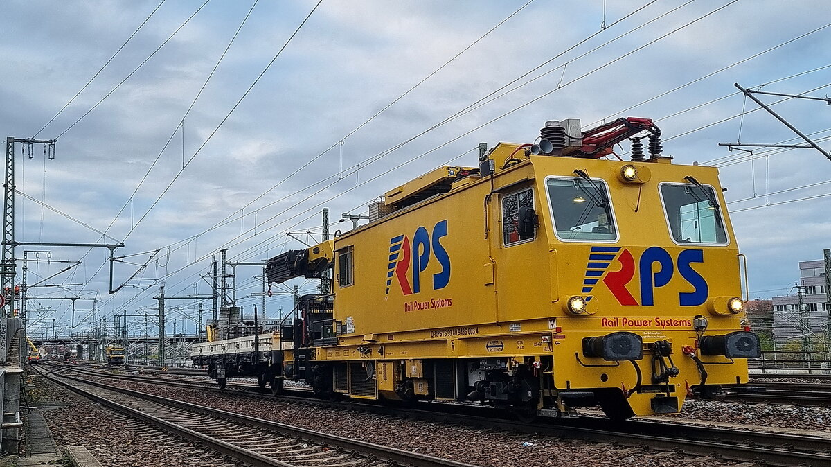 Das unbekannte Gleisarbeitsfahrzeug ist ein Motorturmwagen namens "MTW 100".
