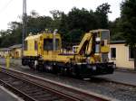 Ein unbekannt gebliebenes Baufahrzeug bei der Einfahrt Pechbrunn Richtung Marktredwitz, 23.07.2021