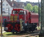 Dieser Schwerlastkleinwagen (99 80 9780 036-6) wurde von einem Zweiwegebagger LIEBHERR 922 Rail gezogen. (Bochum, April 2024)