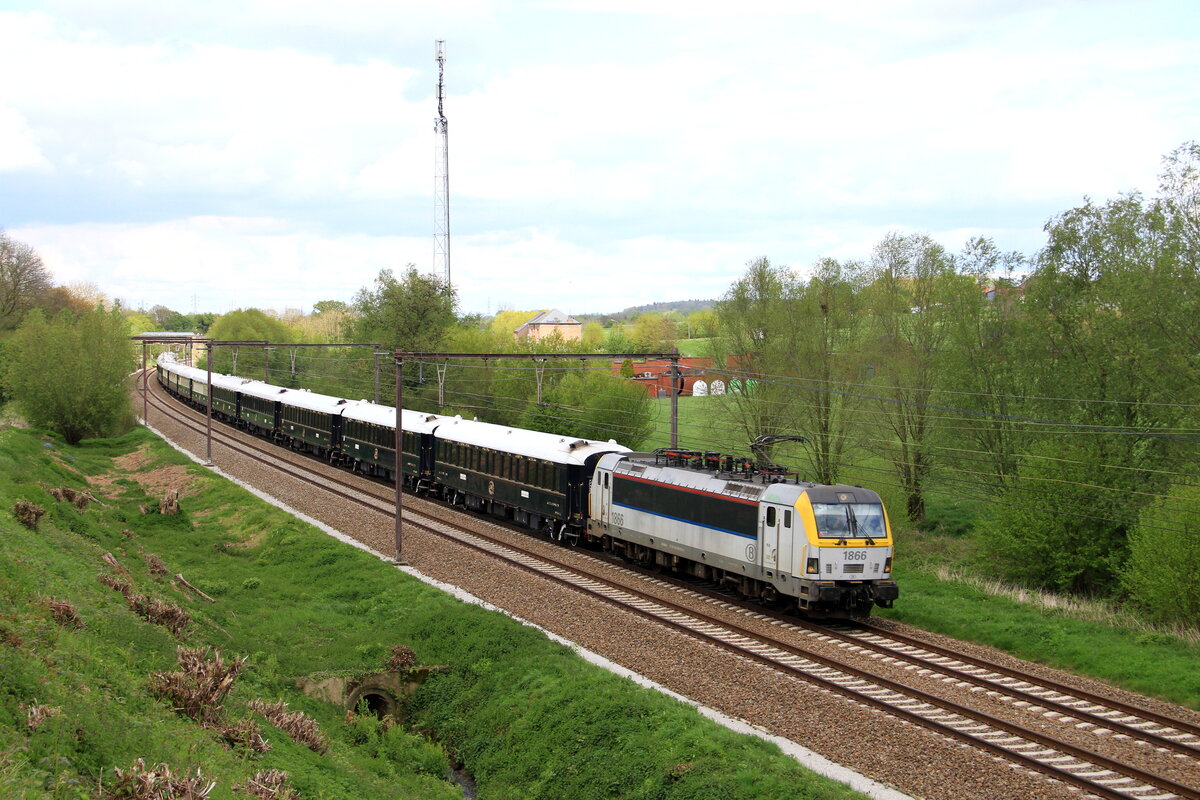 Belgium, SNCB Locomotive 1866 hauling the Orient-Express Amsterdam - Venise, in Hennuyères Hennuyères, 18/4/2024
