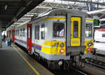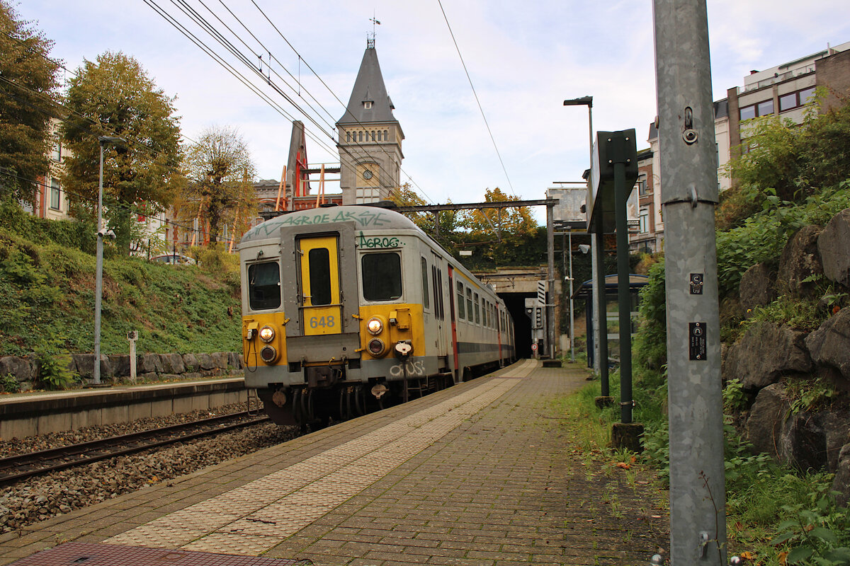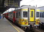 Am 17.10.2023 verlässt der SNCB-AM 66 648 den Aachener Hauptbahnhof in Richtung Spa-Géronstère. Auch hier wurden "Hinterlassenschaften" von Schmierfinken digital entfernt.