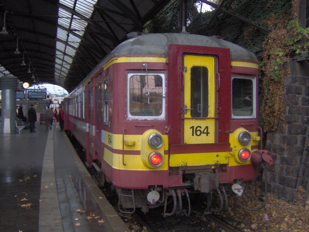 Der belgische Triebwagen Nummer 164 der SNCB wartet im Aachener Hbf