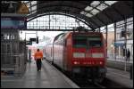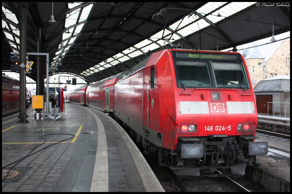 146 024-5 als RE1 kurz nach ihrer Ankunft in Aachen, der dort seinen Endpunkt hat.