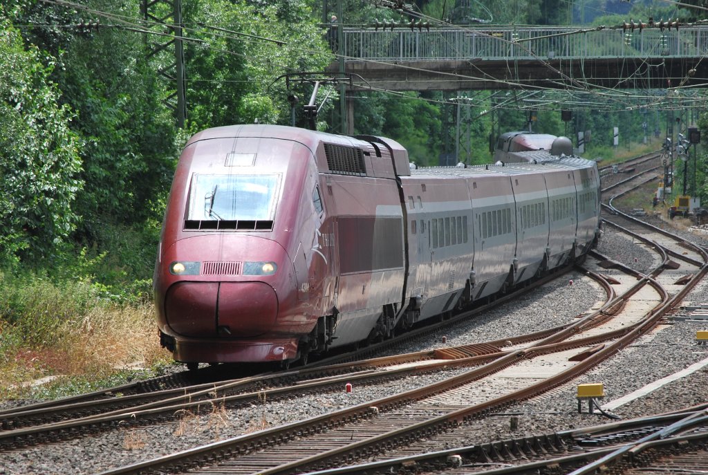 Thalys 4304 Paris-Köln fährt die Südrampe herunter und trifft im Aachener Hauptbahnhof ein (19.