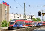 Thalys 4304 Paris-Köln fährt die Südrampe herunter und trifft im Aachener Hauptbahnhof ein (19. Juni 2009).