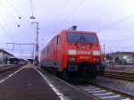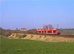 ... wie das Bahnsteigdach die eigentlich gerade Dachlinie des VT 622-Dieseltriebwagens in unregelmäßige Abschnitte zerteilt.