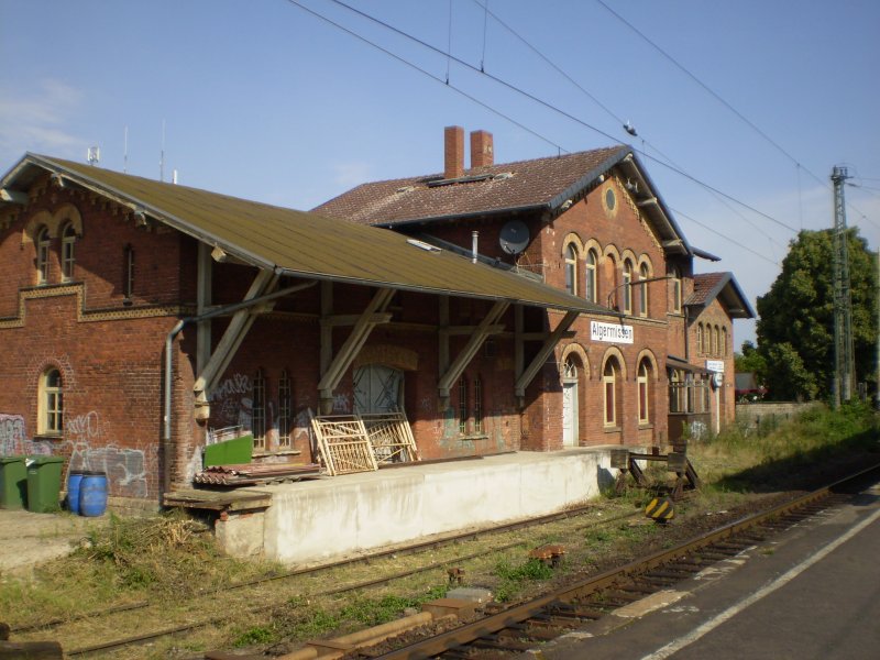 Empfangsgebäude Algermissen von der Bahnseite im August 2008 - wird heute als Bistro/griechischer Imbiß genutzt.