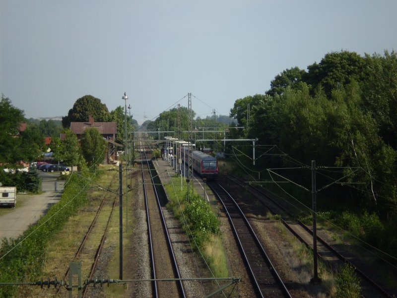 Gleisanlagen Bahnhof Algermissen von der Straßenbrücke Kranzweg aufgenommen im August 2008