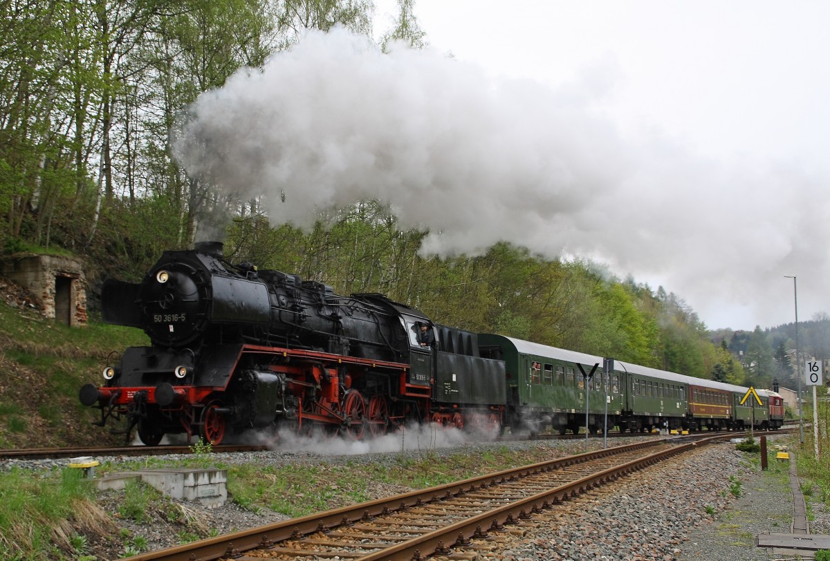 50 3616-5 am 11.05.2013 im Bahnhof Annaberg-Buchholz Süd.