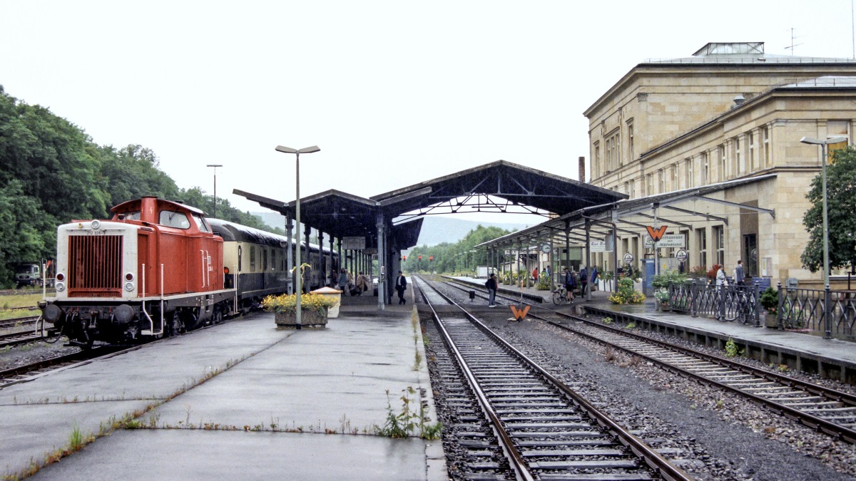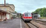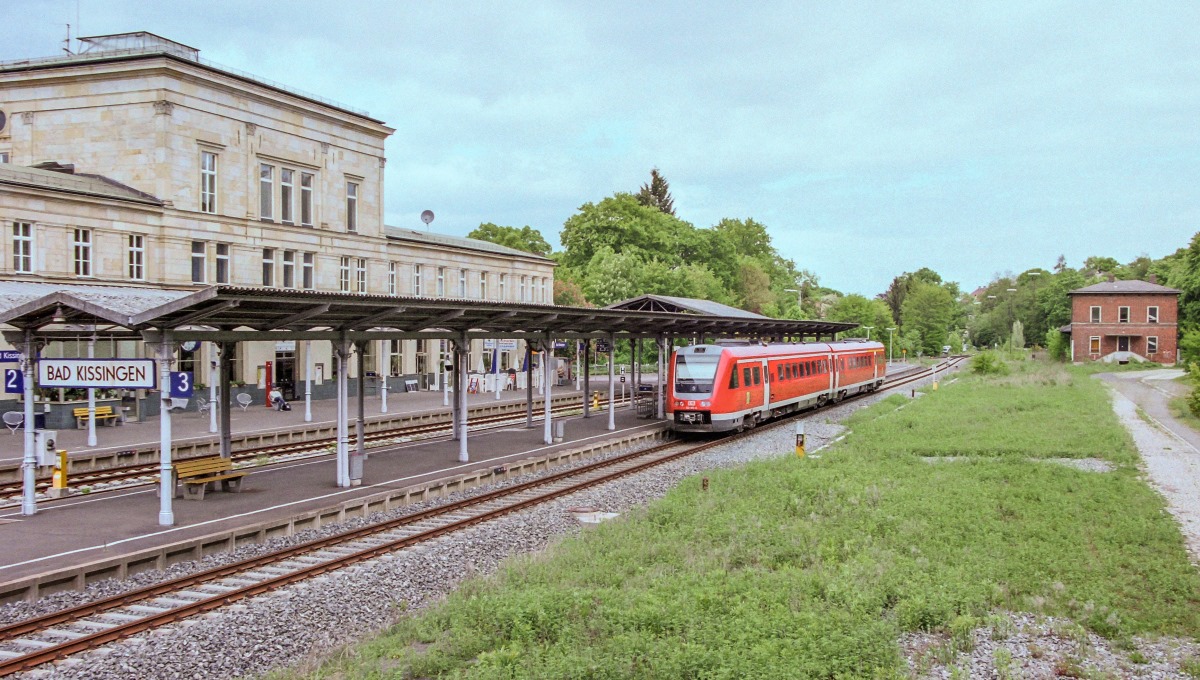Der "RegioSwinger" 612 071 war am 19.5.06 ganz allein in Bad Kissingen. Neben Gleis 3 waren die früher umfangreichen Gleise für den Güterverkehr schon komplett verschwunden.