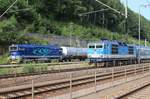 383 062 der EP Cargo wartet am 13.06.19 in Bad Schandau mit einem Kesselwagenzug auf die Abfahrt Richtung Decin.
