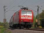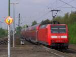 146 013 (NVR Nummer 91 80 6 146 013-8 D-DB) als Schublok des RE 50 nach Leipzig im Bahnhof von Bad Schandau am 21. Mai 2016.