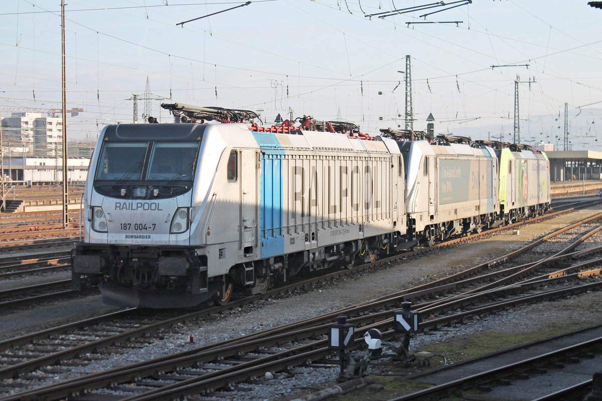 Am sonnigen Nachmittag des 01.02.2017 stand Rpool/BLSC 187 004-7 zusammen mit Rpool/BLSC 187 008-8 "DVA - I´m insured with the DVA." und der Re 486 509 im Bahnhofsbereich vom Badischen Bahnhof von Basel und warteten dort zusammen auf ihre nächsten Einsätze.