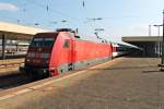 Stadt Basel (Schweiz) am Donnerstag den 12.04.2012 um 15:59 Uhr. Im DB Personenbahnhof "Basel Bad Bf" steht auf Gleis 10 die DB E-Lok 111. Sie trägt die UIC Nummer 91 80 6111 062-6. Zusätzlich ist sie mit einem aufgeklebten Wappen versehen. Es ist das Wappen von Neuenburg am Rhein. Es handelt sich hier um eine Regionalbahn nach Offenburg. Die Lok schiebt den Zug (siehe Beleuchtung). Betreffs Bahnhofstandort siehe Staatsvertrag vom 27. Juli 1852. Koordinaten GMS (Grad, Minuten, Sekunden): N 47° 34’ 3.7’’ O 7° 36’ 30.6’’