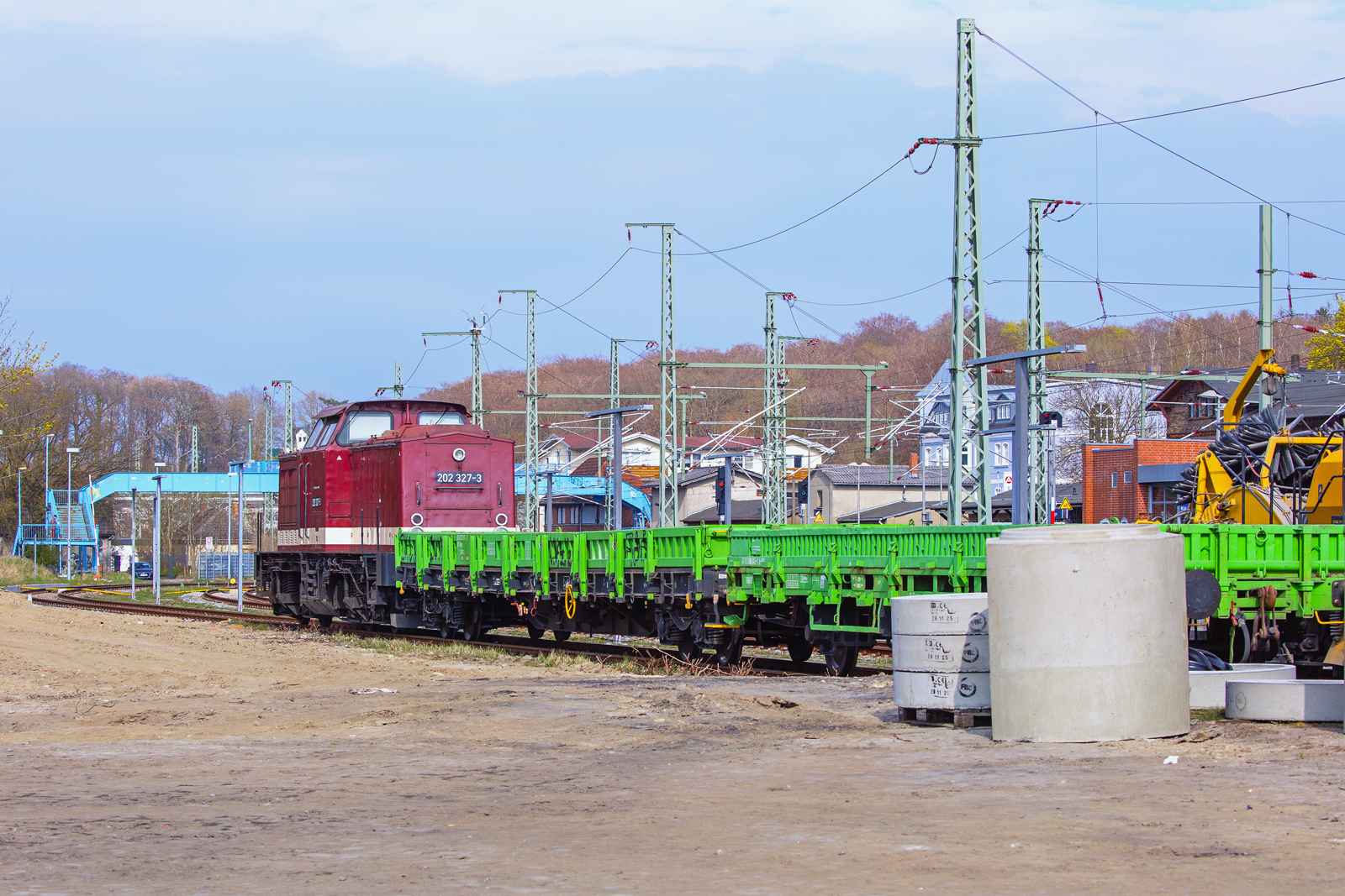 Entweder man hat den ersten Wagen hinter 155 182 vergessen in Mukran zu Entladen oder es wurden Rohre mit Mängel beladen die am 26.März 2010 wieder zurück nach Mühlheim gingen.Hier durchfuhr der Zug Bergen/Rügen.
