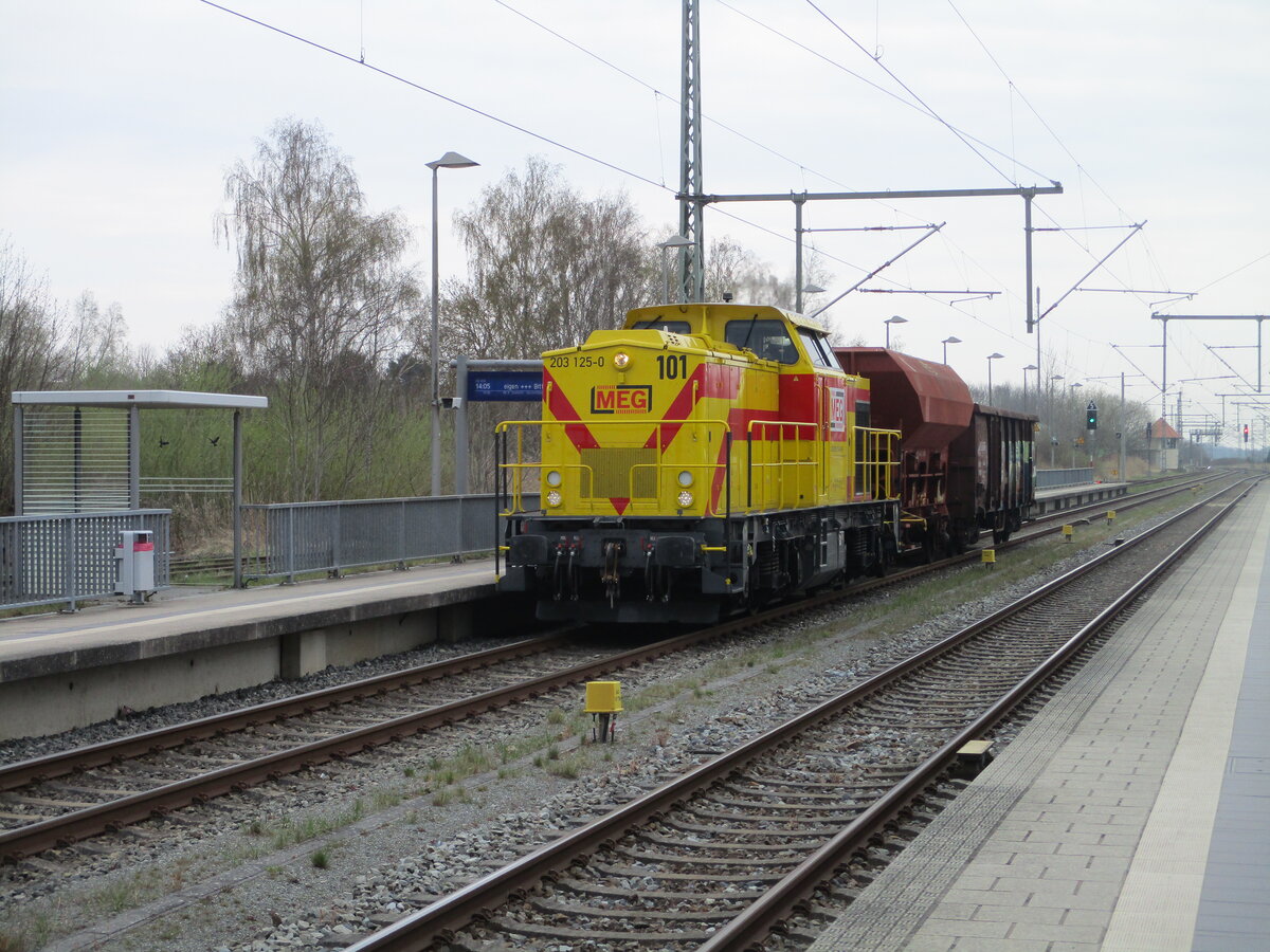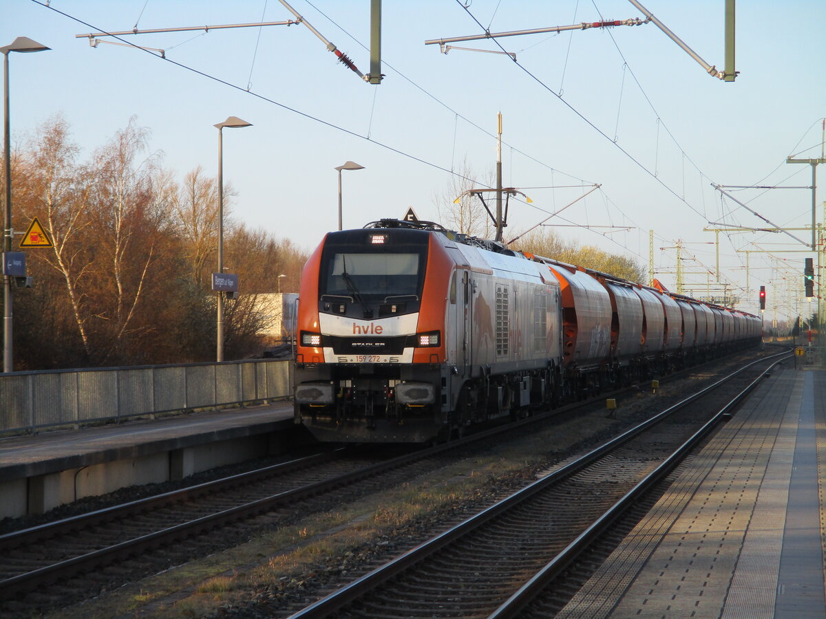 Für Arbeit in Mukran sorgte die hvle 159 272,am 02.April 2026,als Sie mit dem Getreidezug,durch Bergen/Rügen kam.