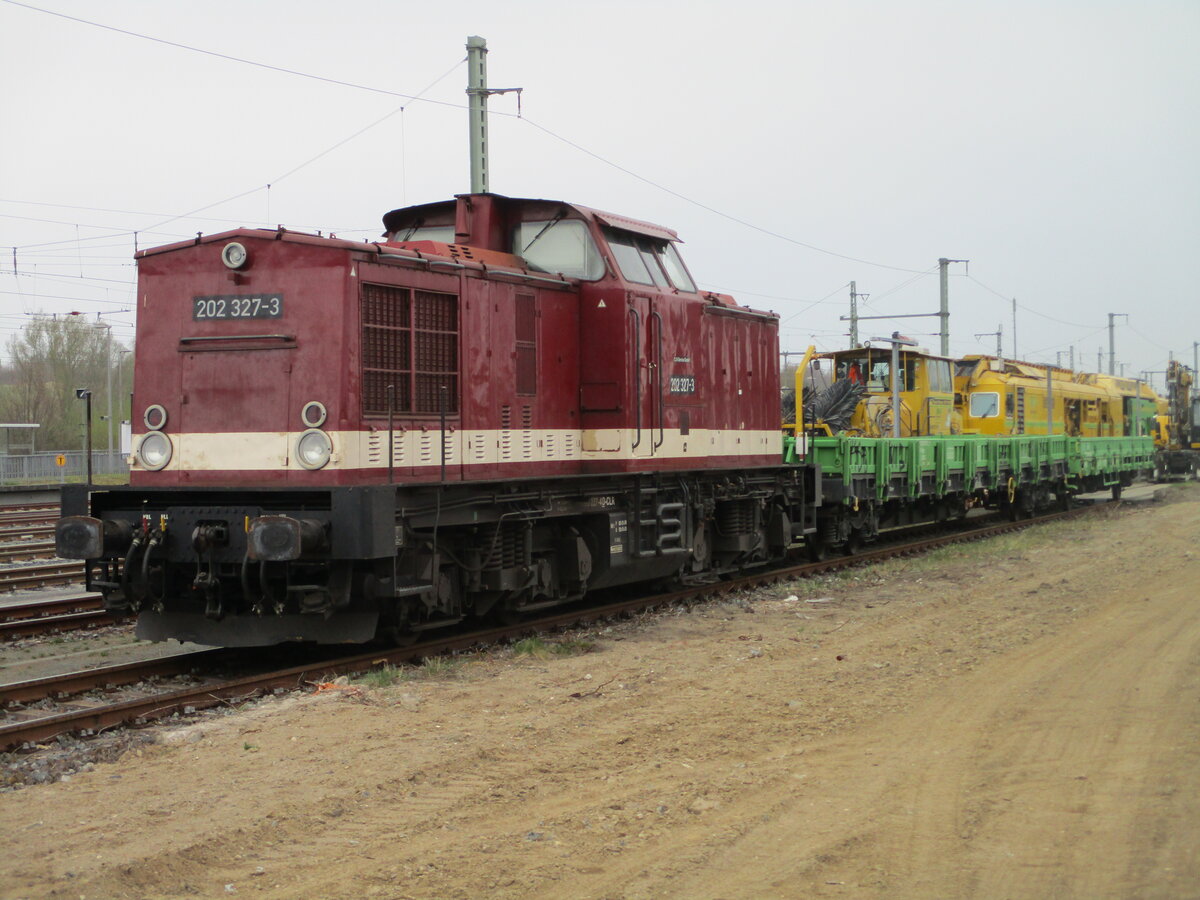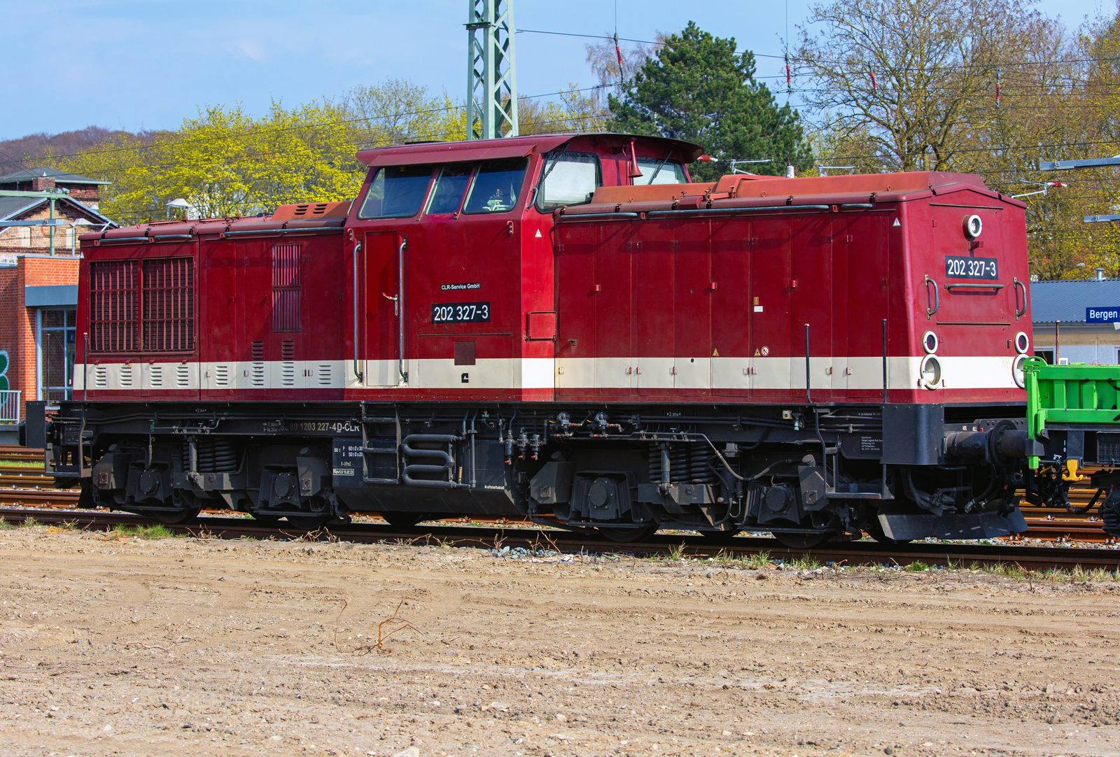 CLR LOK 202 327 in Bergen auf Rügen abgestellt. An dieser Stelle des Nebengleises wurde vor kurzem der ehem. Güterboden zurückgebaut. - 16.04.2026