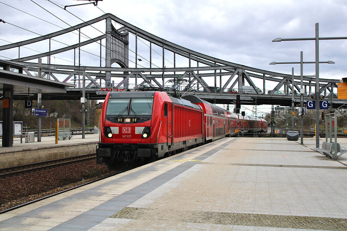 DB 147 017 erreicht Berlin Gesundbrunnen mit dem FEX nach Berlin Hbf. (03.04.2023)
