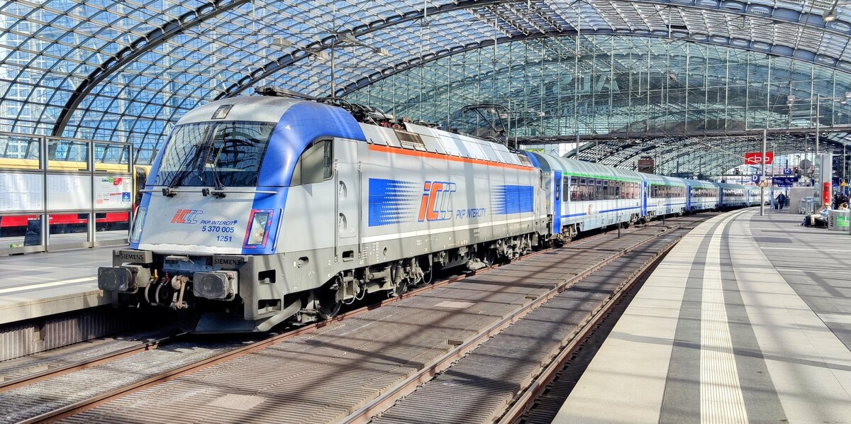 5 370 005 hatte am 28.03.2024 die Aufgabe den EC 246  BERLIN-WARSZAWA-EXPRESS  von Warschau nach Berlin zu bringen. Aufgenommen am Endbahnhof Berlin Hbf
