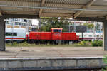 Stellwerk im Bf. Berlin-Lichtenberg mit ex DR 233 450 im Hintergrund, jetzt als 07-450 bei einem privaten EVU, aufgenommen am 20.08.2025.