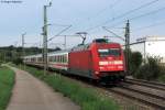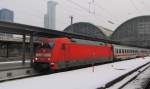 Hier links 182 004 mit einem RE1 (RE18177) von Brandenburg Hbf. nach Frankfurt(Oder) und rechts 101 053-7 mit IC2243 von Bad Bentheim nach Berlin Ostbahnhof, diese beiden Züge begegneten sich am 4.1.2014 in Berlin Ostbahnhof.