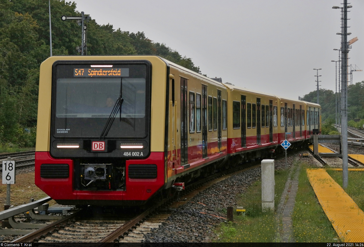 Endstation Berlin Spindlersfeld. Ein Zug der Br480 steht als S41 in Spindlersfeld bereit.