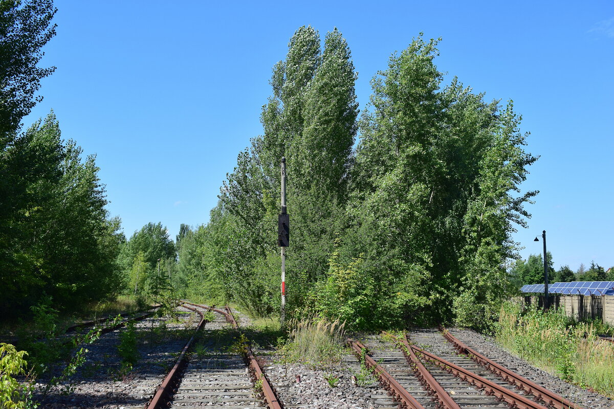 In Braunsbedra umweit des Bahnhofes gab es bis Ende der 90er Jahre die Mineralölwerke Lützkendorf. Heute zeugen nur noch die alten Wege sowie einzelne Gleisanlagen und einzelne Gebäuderuinen von der einstigen Raffinerie. 2 lange Abstellgleise liegen bis heute und könnten mit wenig Aufwand auch wieder genutz werden. Es schaut schon sehr kurios aus wenn in einem sehr zugewachsenen Gleis ca 100-150m vor wenigen Jahren ausgetauscht wurden und das Gleis somit wie neu aussieht. Blick in Richtung der Prellböcke.