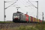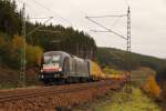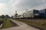 193 606 zog am Morgen des 17.10.15 einen AKE, welcher als Tagesfahrt von Berlin aus nach Weimar und Erfurt unterwegs war, durch Burgkemnitz Richtung Bitterfeld.