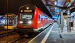 Mit Steuerwagen voraus fuhr am 29.12.2020 der RE1 von Cottbus nach Magdeburg Hbf über Frankfurt/Oder und Berlin. Hier ist der Zug am Startbahnhof zu sehen.