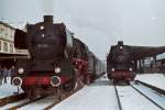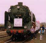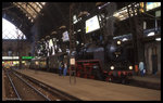 62 015 zur Sonderfahrt des Sonderzuges anläßlich des 100-jährigen Streckenjubiläums Flöha-Reitzenhain am 10.05.1975 in Dresden-Hauptbahnhof