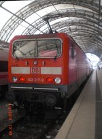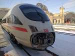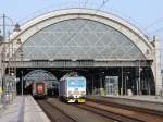 Die  HERTHA -Lok 101 144 mit dem EC 378 nach Stralsund bei Ausfahrt aus Dresden Hbf.; 06.03.2010