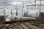 Die "HERTHA"-Lok 101 144 mit dem EC 378 nach Stralsund bei Ausfahrt aus Dresden Hbf.; 06.03.2010