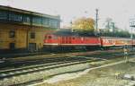 Klasse Lokportrait vor der Kulisse des Dresdner Hauptbahnhofes.