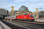 Ein Taurus der ÖBB (1216 237-8) setzt sich in Dresden Hbf vor den verspäteten CNL in Richtung Prag. Fotografiert am 21.11.2010.