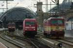 421 376 und 421 381 der SBB Cargo durchfahren den Dresdner Hbf in Richtung Bad Schandau. 05.10.2012