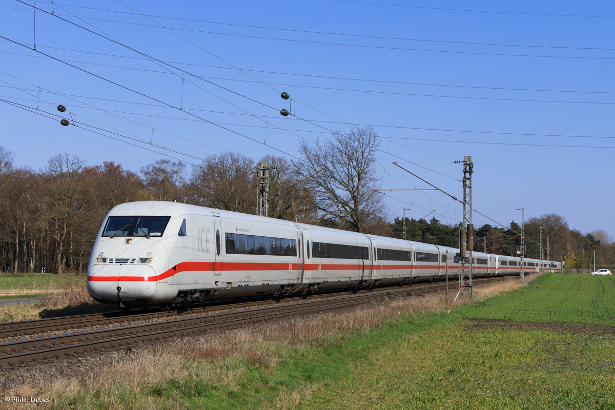 412 072-7 "Tz 9472" als ICE 611 Richtung München Hbf, auf Grund einer Oberleitungsstörung zwischen Münster und Dortmund, hier umgeleitet in Hamm Pelkum, 18. März 2026
