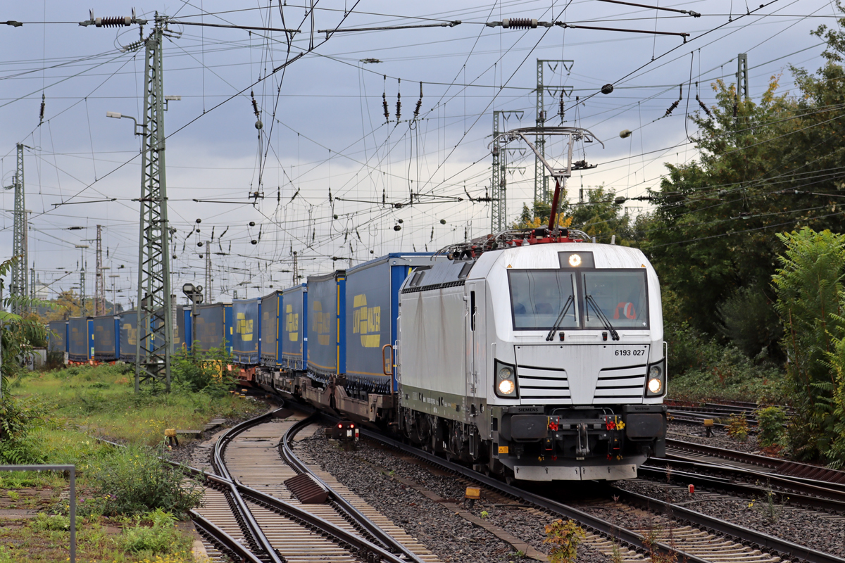 Mit dem EC 174 von Praha hl. n. nach Flensburg durchfährt 193 685-5 am 10.07.2023 den Bahnhof Elmshorn. Eigentümer der Lok ist RSL (Rolling Stock Lease s.r.o., Bratislava), zugelassen ist sie in Deutschland (UIC-Nr. 91 80 6193 685-5 D-RAILL).
