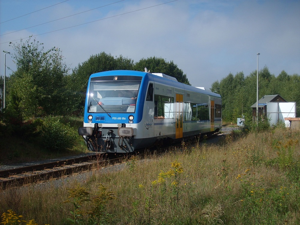 FEG 650 057 "Esther" ist mit Ziel Holzhau abfahrbereit. (Freiberg, September 2020)