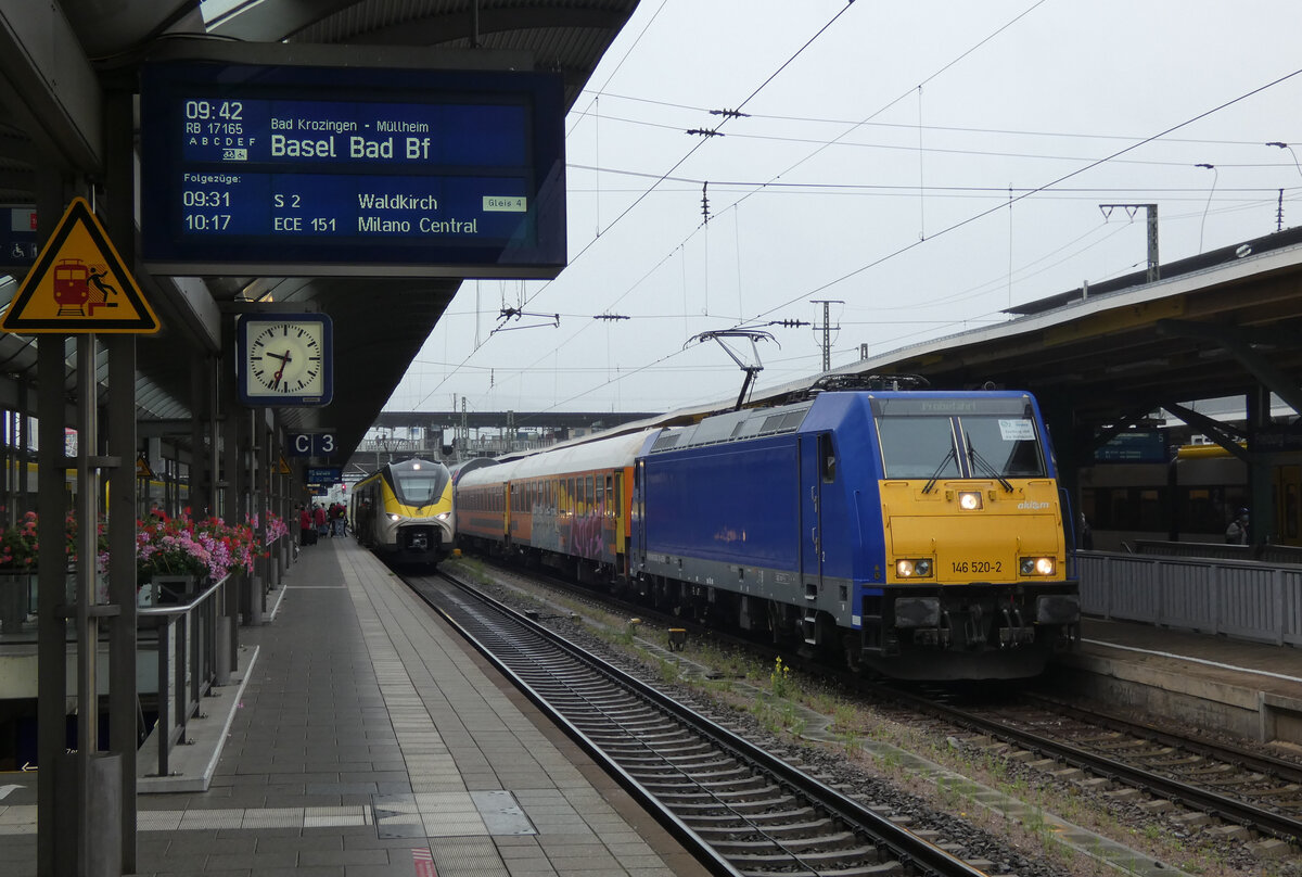akiem/SRI 146 520 mit DPN S2 88358 (Freiburg Hbf - Waldkirch) am 30.08.2021 in Freiburg Hbf.